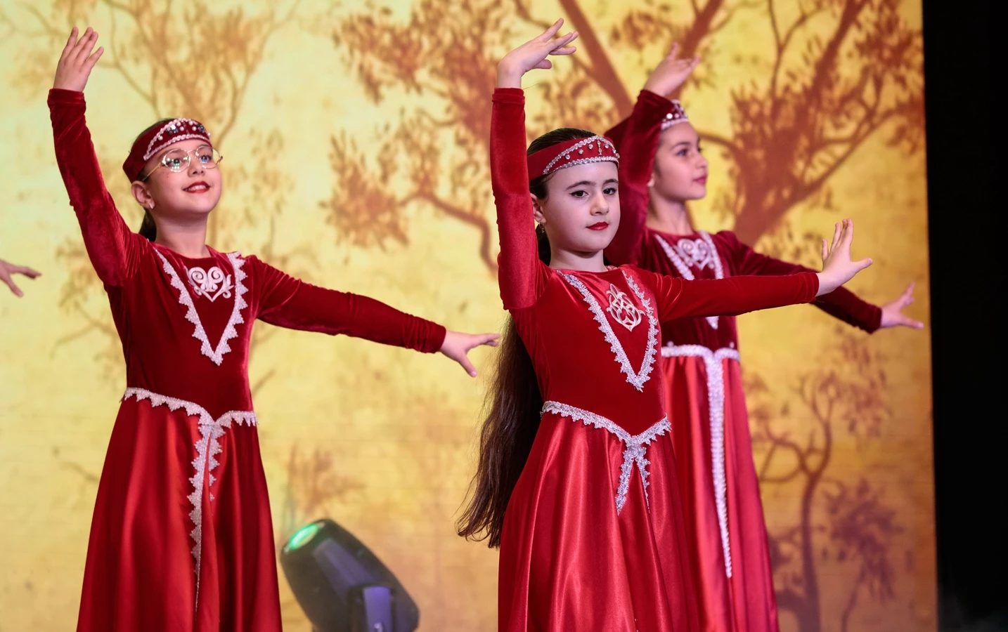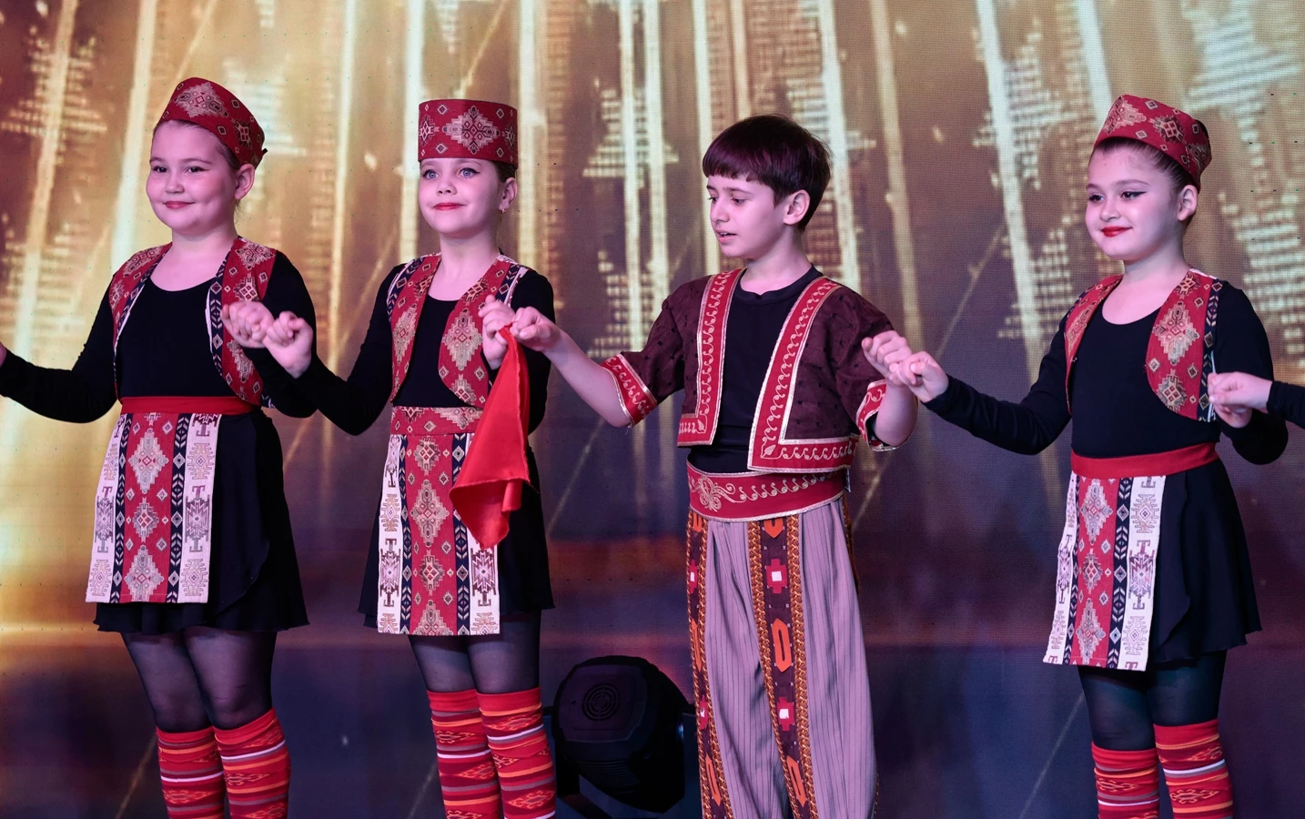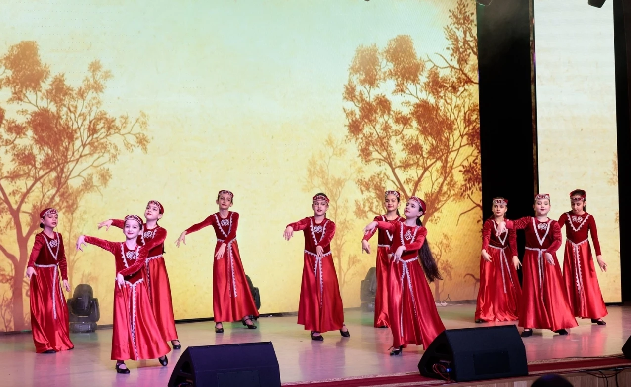 Праздничный концерт открыли дети — они исполнили яркий танец под музыку композитора Александра Аджемяна «Возраст любви».