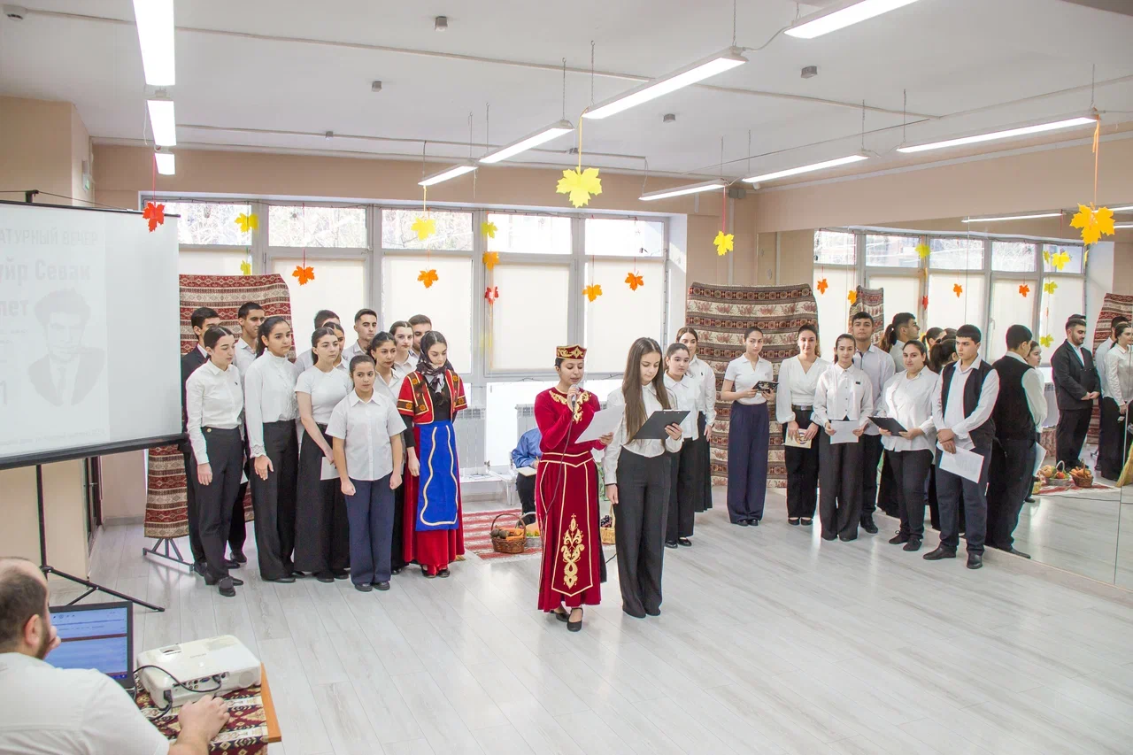 Центральным событием вечера стало выступление учеников танцевального ансамбля «Ширак». Юные артисты не только продемонстрировали мастерство танца, но и прочли стихотворения Паруйра Севака, позволив зрителям погрузиться в атмосферу его поэтического мира. Коллективное выступление ансамбля стало символом преемственности поколений и сохранения культурных традиций.