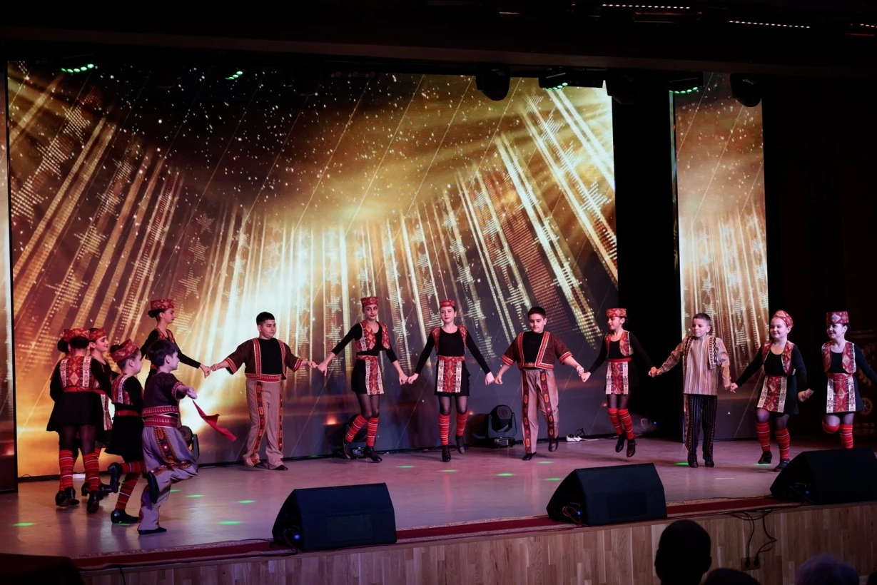 Праздничный концерт открыли дети — они исполнили яркий танец под музыку композитора Александра Аджемяна «Возраст любви».